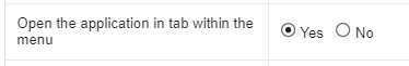 Esta configuración está disponible si el atributo Abrir la aplicación en una pestaña dentro del menú está configurado en Sí