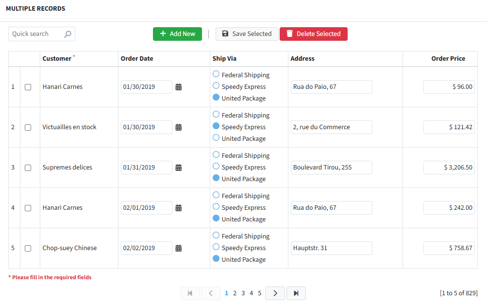 - Registros Múltiples - Muestra múltiples registros por página, permitiendo incluir y editar varios registros simultáneamente.