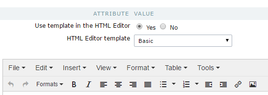 - Use template in the HTML Editor - Selecting No (Image Below), you won’t be using the new templated of the HTML Editor field. In this case, the options should be set up in the field.