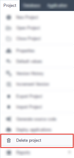 Or can be deleted by menu Project > Delete project, in this case will be necessary to open the project.