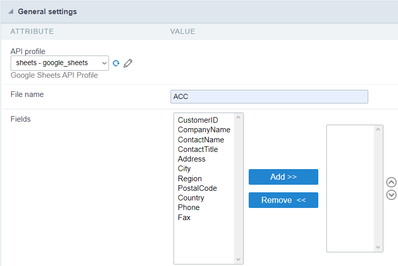 Allows you to set a name to the file to be created or a file already created in Google Drive.