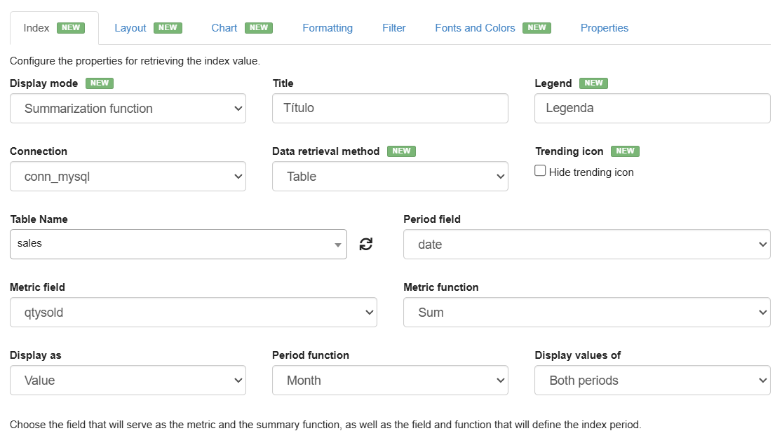This option allows you to select a table field to create a metric, similar to the chart application. However, you can perform some comparisons based on the period defined in the next option.