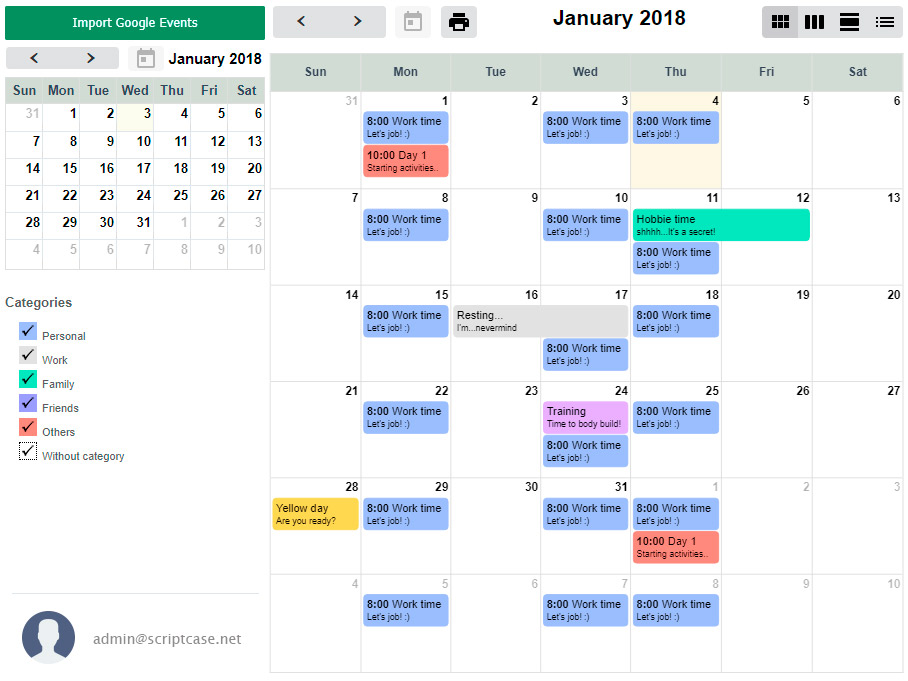 Saber másCrea sistemas y aplicaciones web de forma rapida y simple, tales como: formularios, grid, reportes, calendarios, menu interactivo, graficas personalizables con diferentes metricas, estilos y dimensiones , resumenes y mucho más, ademas puede en todas las aplicaiones permite exportar y crear diferentas archivos como XLS, PDF, Word, etc.