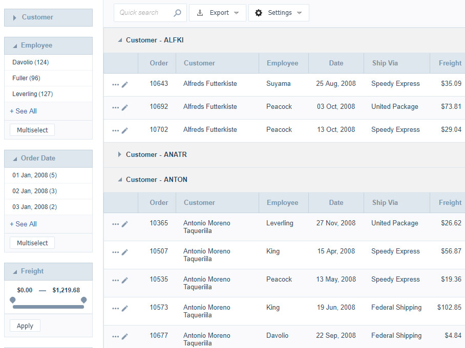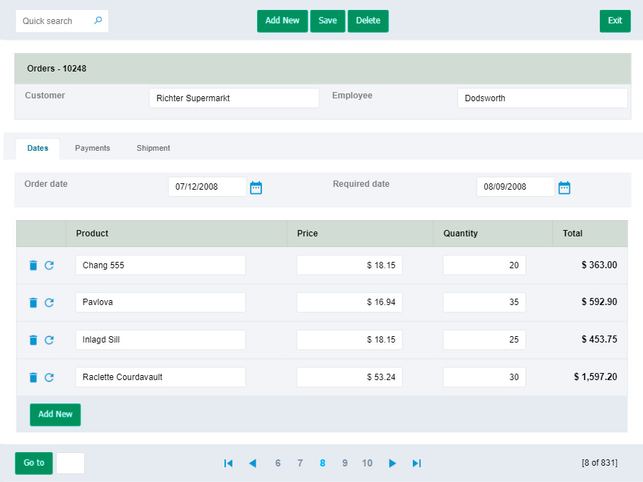 Baje un trial gratis por 20 días! Ver una demo en vivoConecta con su base de datos (MySQL, PostgreSQL, SQLite, Interbase, Firebird, Access, Oracle, SQL Azure, Amazon Aurora, MS SQLServer, DB2, SyBase, Informix o conexión ODBC), genere y construya aplicaciones web basadas en sus tablas de forma simple y segura, facilitando el acceso y la actualización de sus datos.