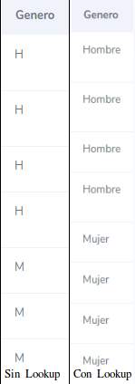 - Valor : Atributo que corresponde al valor que está almacenado en el campo de la tabla. Por ejemplo, el valor H se incluirá en la tabla cuando el usuario verá en la lista Hombre.