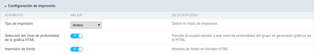 Le permite configurar los contenidos del archivo de impresión (Ambos, Página actual, Informe completo).