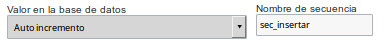 - Aumento automático (automático) : Permite usar el incremento generado por la base de datos. Se usa solo cuando el campo de la base de datos es del tipo INCREMENTO AUTOMÁTICO o similar. Para las bases de datos que usan secuencias como Oracle, PostGres y Firebird, es necesario informar el nombre de la secuencia.