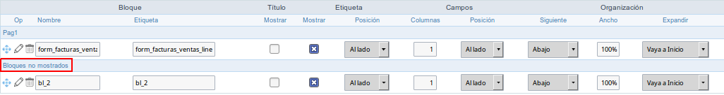 - Mostrar : La bandera que controla id la etiqueta de los campos se mostrará en el bloque.