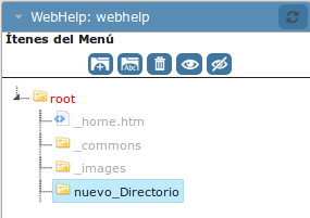 En el lado izquierdo, en el bloque ‘WebHelp’, veremos la estructura de la carpeta. Aún en este bloque, podemos crear las carpetas de la documentación.
