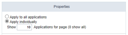 If you use the Apply individually option, will be necessary to define to how many applications will be showed in the page. Use 0 all application will be showed.