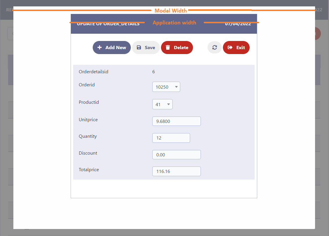 Defines the width of the modal where the form will open. This width refers to the horizontal space available for displaying the application.