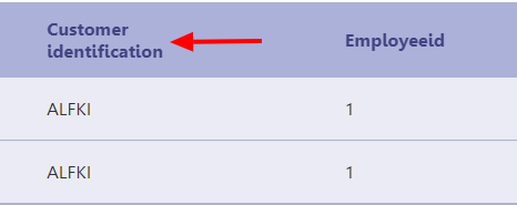 Exemplo dos ícones de ordenação do tema exibidos no mouseover