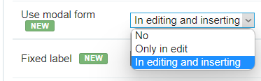 For the Only in edit and In editing and inserting options, two new attributes will be displayed for defining the width and height of the modal where the form will be opened.