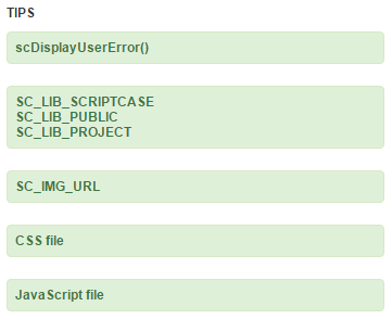 These Markups are of obligatory use in the item HTML. If they are not used, certain internal Scriptcase routines will not be executed.