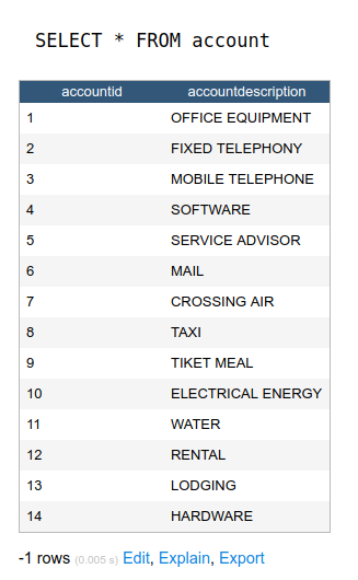 If everything goes well, when runs the command, will be showed the consult result, with the edição dos registros possibility.