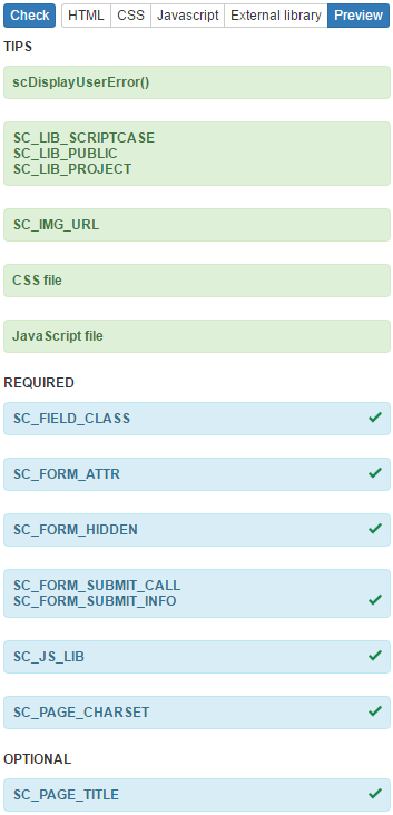 These Markups are of obligatory use in the item HTML. If they are not used, certain internal Scriptcase routines will not be executed.