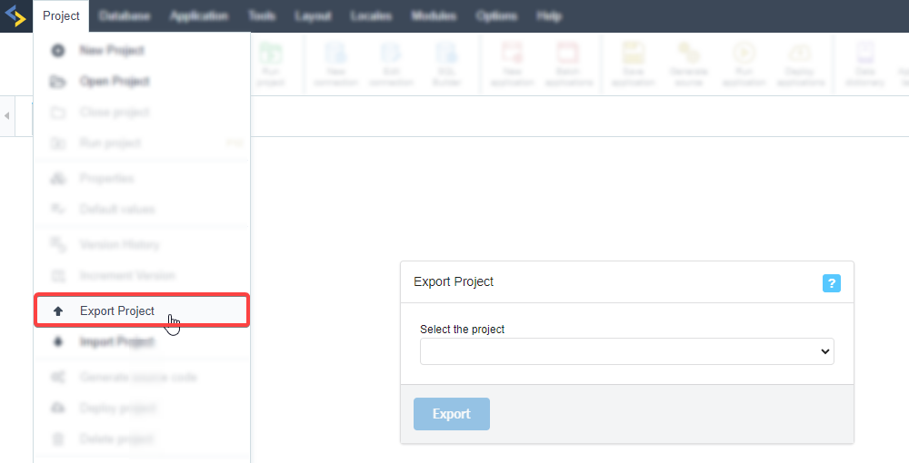 In your current Scriptcase, PHP 8.1, 7.3 or 7.0, open the menu then Project > Export Project and export the desired project.