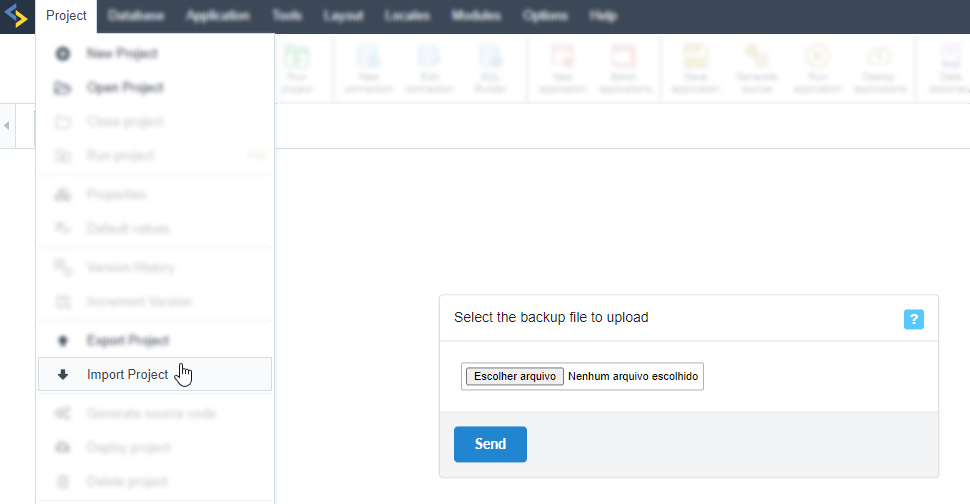 In Scriptcase with PHP 8.2, import the project performed in #Step1, accessing the menu: Project > Import project.