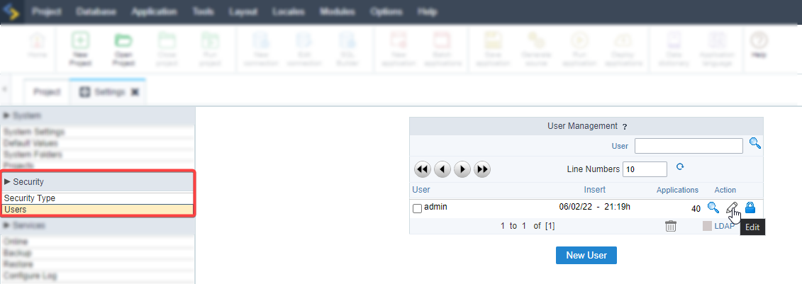 The list of Scriptcase users will be displayed, click on the edit icon