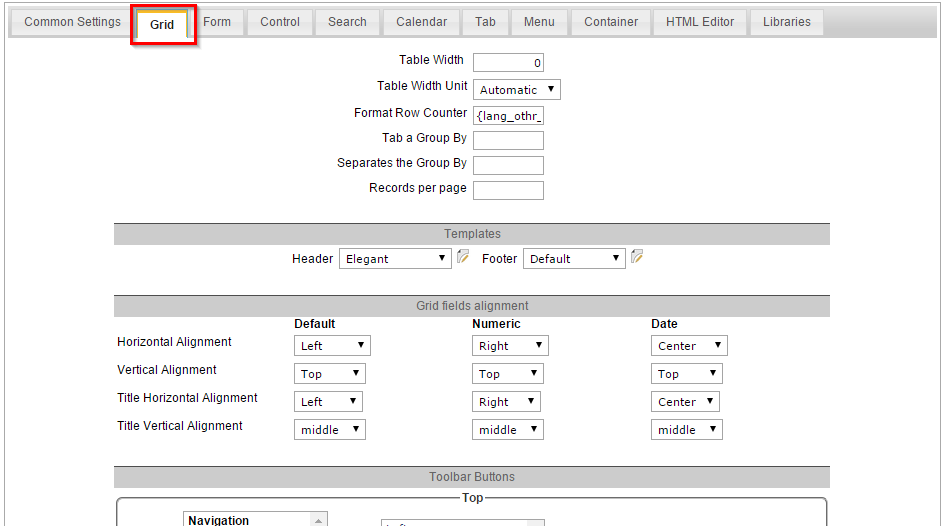 Simple Grid In this tutorial we will see an example of a simple Grid, created with the Scriptcase default values. Setting up the project default values 1. Access the item "Project >> Defaults" in Scriptcase menu.
