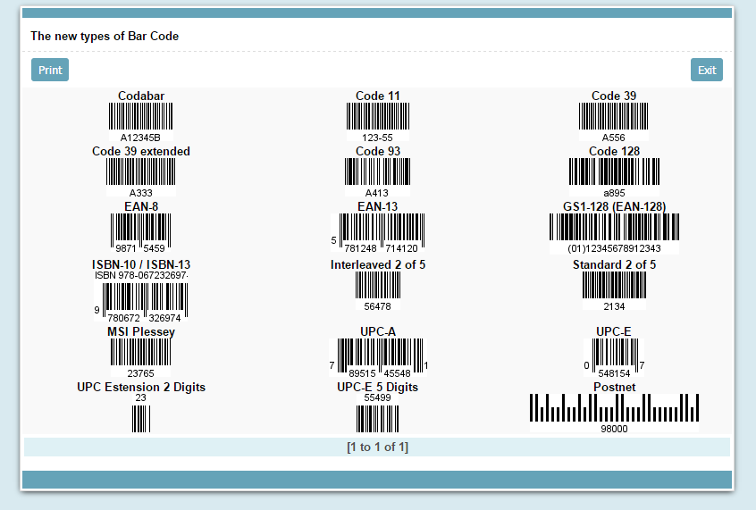 Various types of bar codes In this example we will see how to use the various types of bar codes available in the Grid.