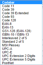 The available barcode formats are: